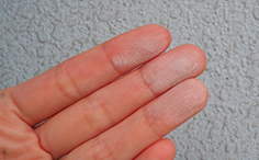 外壁に手で触れると白い粉がついてくるのは劣化のサイン。塗り替え時期です。